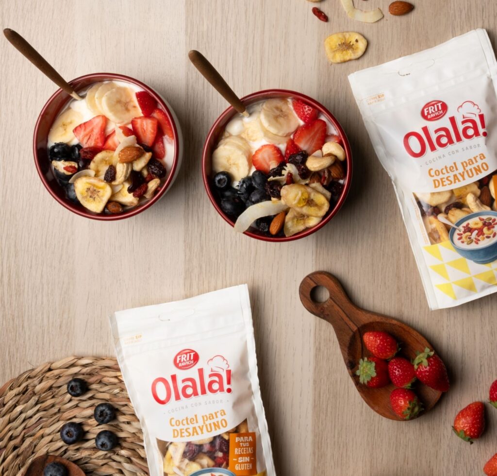 Incorporar la mezcla: Añade el cóctel para desayunos, distribuyéndolo de forma uniforme para que cada cucharada tenga frutos secos, frutas deshidratadas y coco.